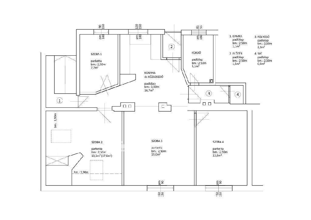 Három külön nyíló szoba (17,6 nm, 13,8 nm, 7,7 nm)