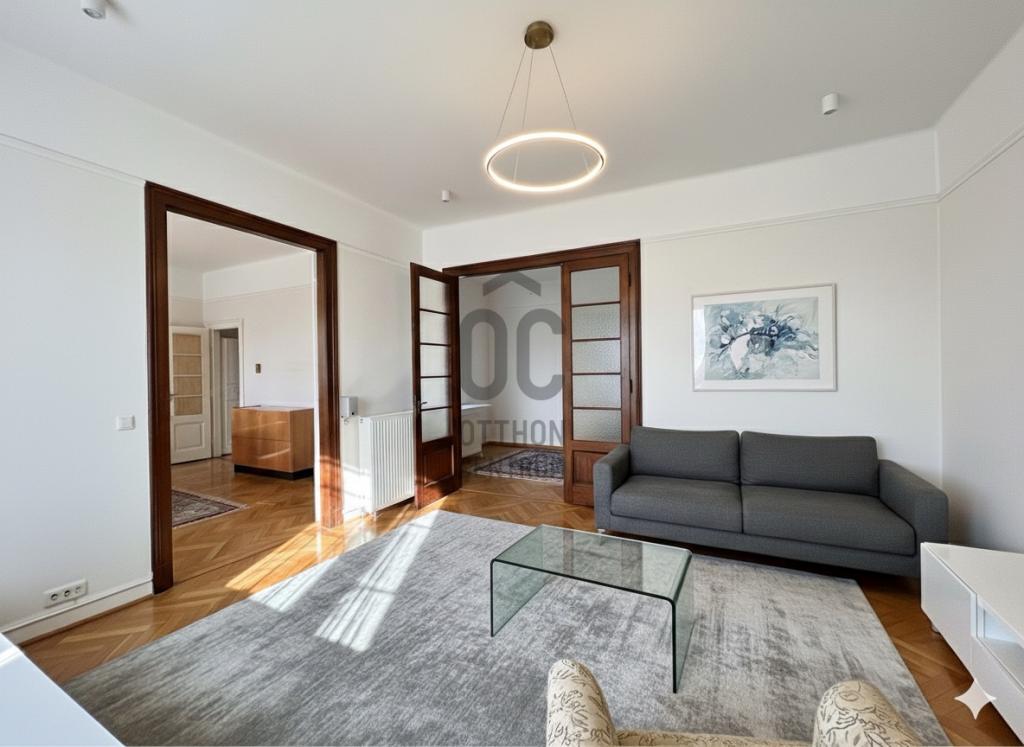 Budapest egyik legnemesebb pontján a Várhegy lábánál, a Vérmező zöldjére néző, 102 m²-es, tágas polgári lakás eladó az Attila úton.