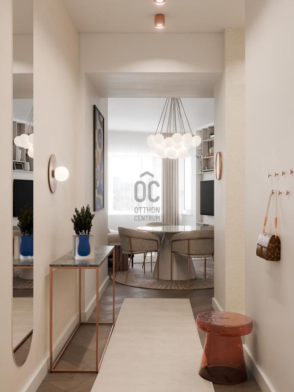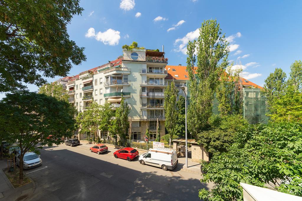 Az ingatlan egy szép homlokzatú, liftes modernista épületben található, mely a Bauhaus esztétikáját idézi. Ez a környék a régi budai polgári világ és a modern városi élet találkozása. Bár a környék idillien nyugodt, a város minden pontja gyorsan megközelíthető: