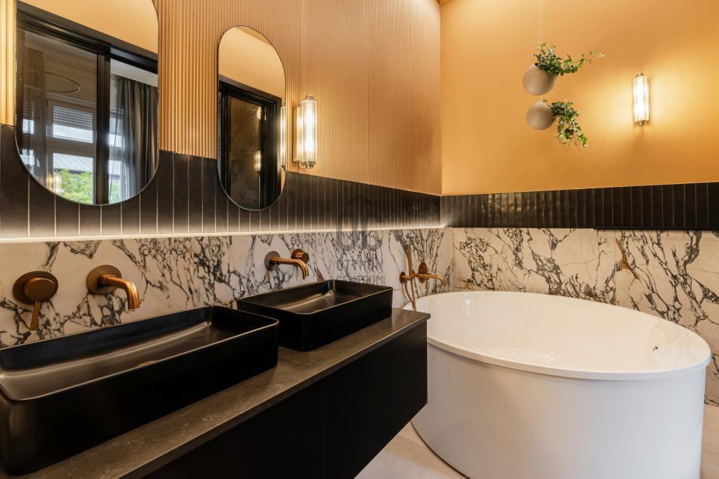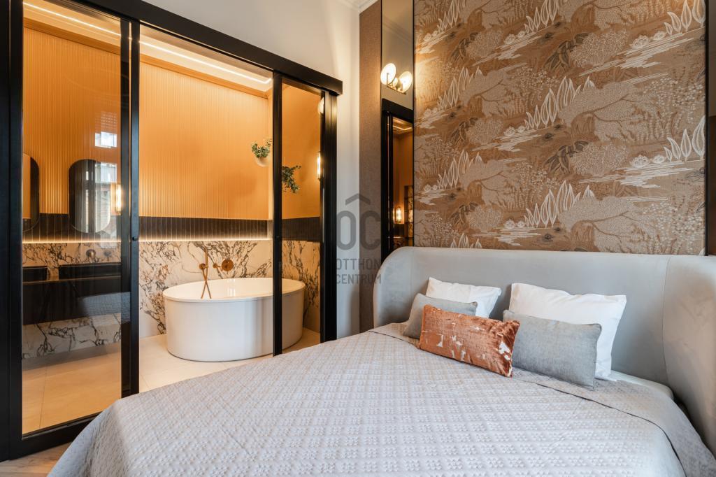 A lakás 2 különálló hálószobával rendelkezik, amelyek mindegyike csendes, kényelmes és jól szeparált. A két fürdőszoba eltérő hangulatú: az egyik modern, üvegfallal elválasztott tusolóval, a másik exkluzív, szabadon álló káddal készült.
