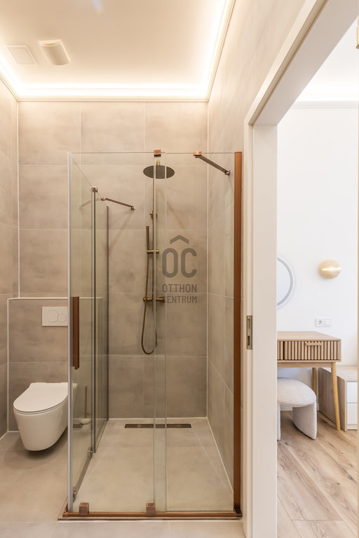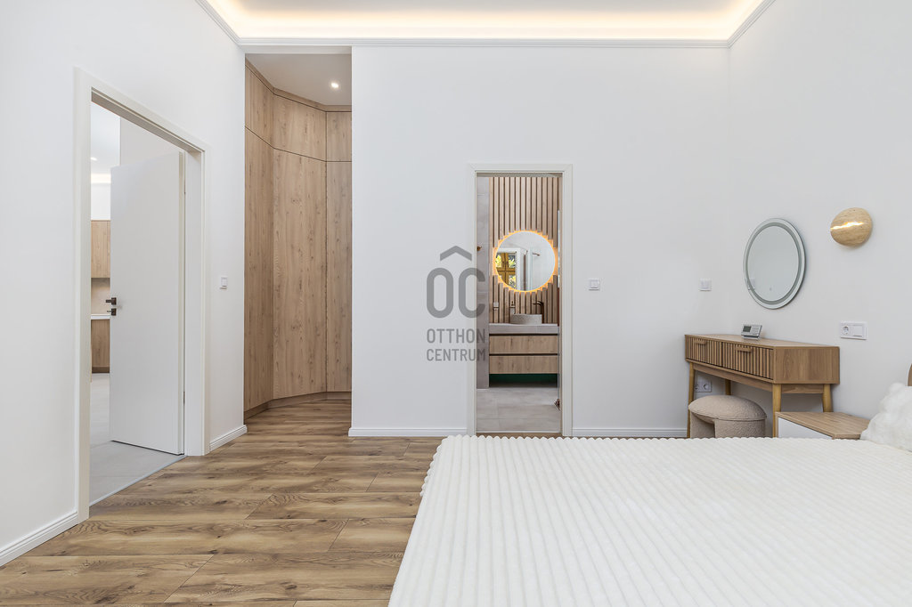 Három különnyíló hálószoba és két teljesértékű fürdőszobát alakítottak ki. A fő hálószoba saját fürdővel és gardróbhelyiséggel rendelkezik, amely kényelmében egy boutique hotel szintjét idézi. A további szobák teljesértékűek, jól szeparáltak – ideálisak családi használatra vagy otthoni munkavégzéshez.