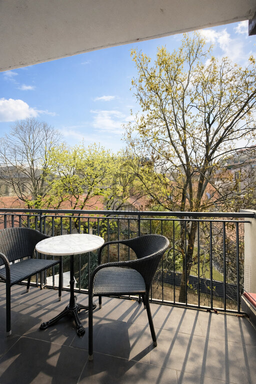 Történelmi, tradicionális életérzés jellemzi a lakást, amelyet legfőképpen az 5 négyzetméteres erkélyről a gyünyörű panoráma mellett élvezhetünk. Tökéletes helyszín a reggeli kávé elfogyasztásához vagy egy kellemes esti pihenéshez.