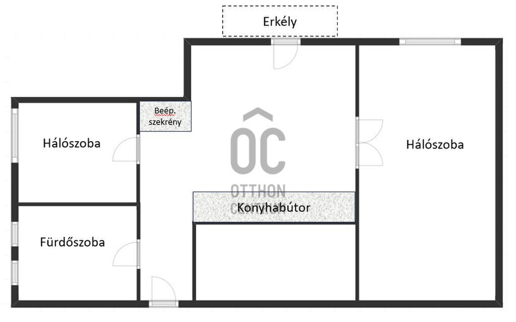 - Teljes fényárban úszó konyha-nappali + 2 hálószoba;
