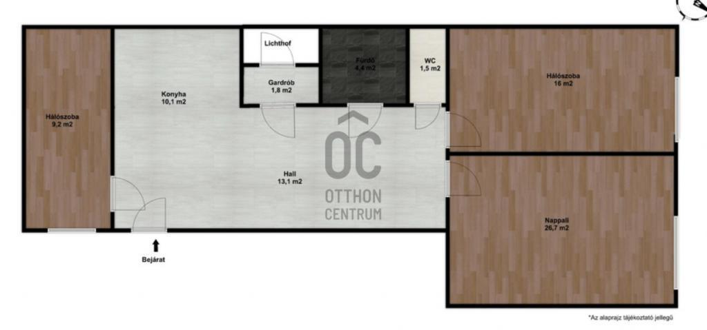 - Nappali, hálószoba, hálószoba, konyha, hall, gardrób, fürdőszoba, wc