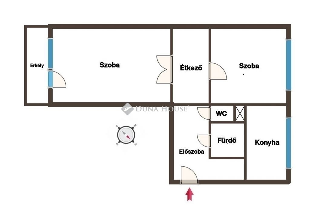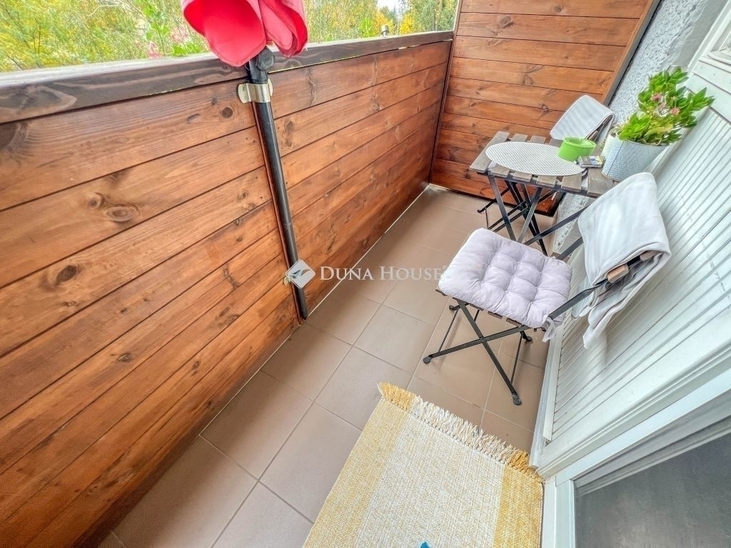 Az ingatlan DK-i fekvésű és a házak közötti, fákkal övezett területre néz. Elosztása kiváló, áll két szobából, egy hallból ami jelenleg étkezőként funkcionál, egy konyhából, kisebb, 2-3 férőhelyes étkezővel, erkélyből valamint külön fürdőből és WC-ből. A pinceszinten az ingatlanhoz szokásjog alapján egy zárható 11 nm-es tároló is tartozik. A fűtésről és a meleg víz ellátásról távhő gondoskodik, a konyhában szellőzőnyílás áll rendelkezésre, a fürdőben és a WC-ben gravitációs elszívó működik.
