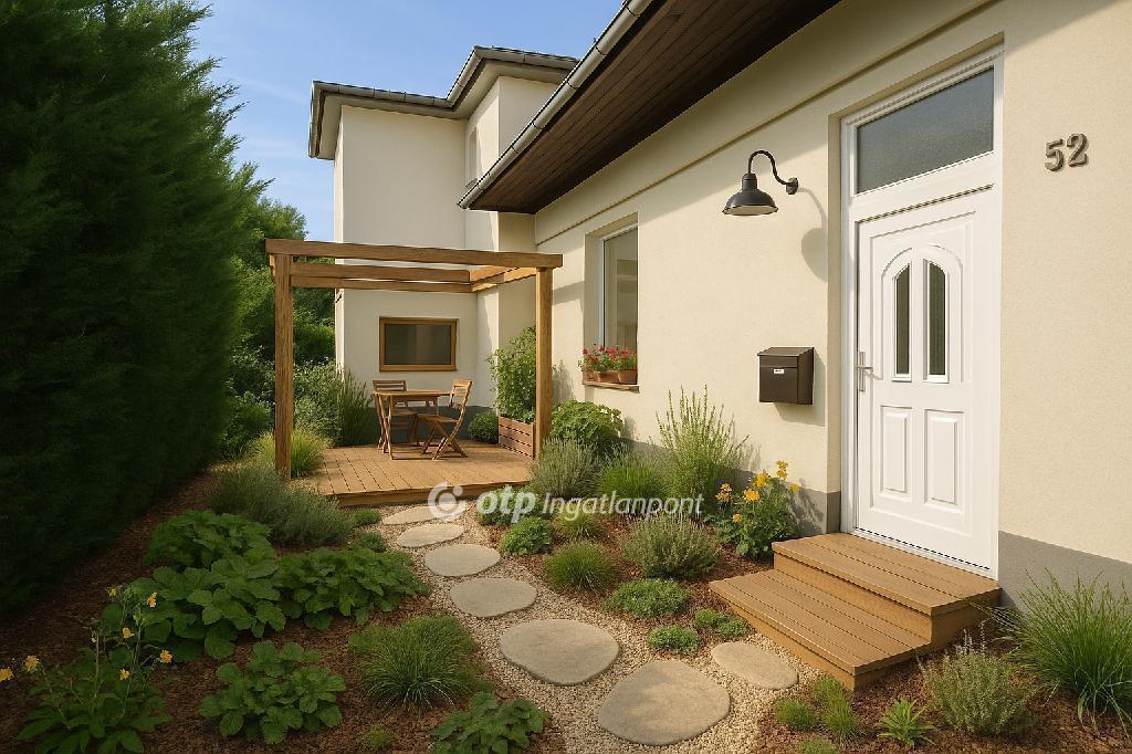 A saját előkert remek hely egy kávézós reggelhez vagy egy baráti terasz kialakításához, ráadásul a tetőtér beépíthető, ha később bővítenéd.