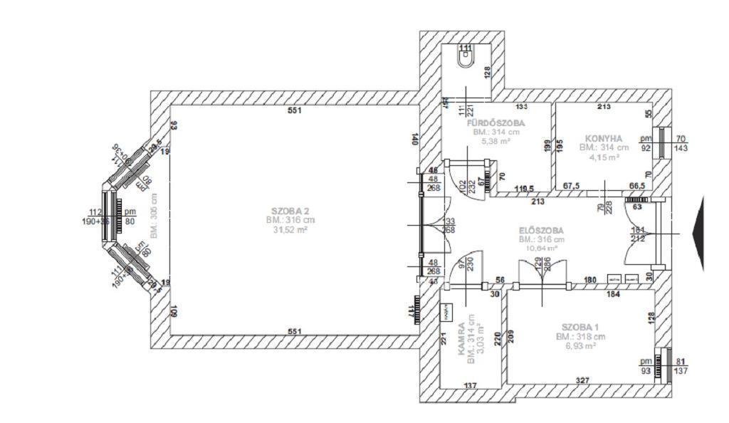 A tulajdoni lap szerint 2 szoba van, ténylegesen egy korábbi átalakítás miatt 3 szobája van. A lakás területe a mérések alapján 78 nm. Az ingatlan az elmúlt időszakban teljes körű szerkezeti felújításon esett át.