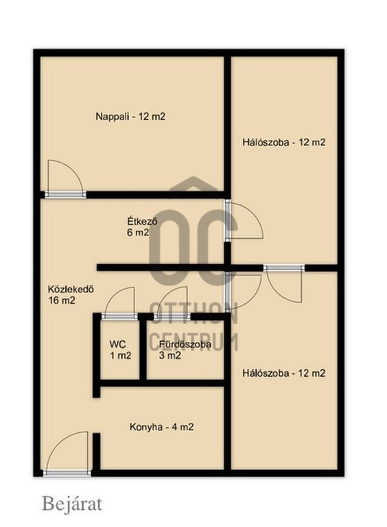 - 3 szoba, mind külön nyíló