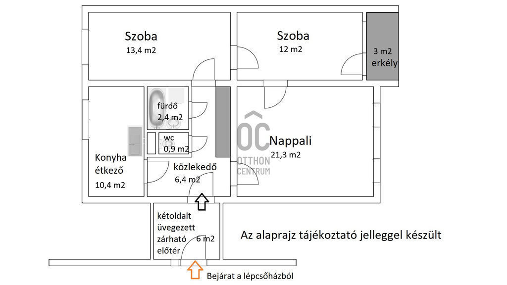 - 68nm a bejárat előtti zárható helyiséggel és az erkéllyel