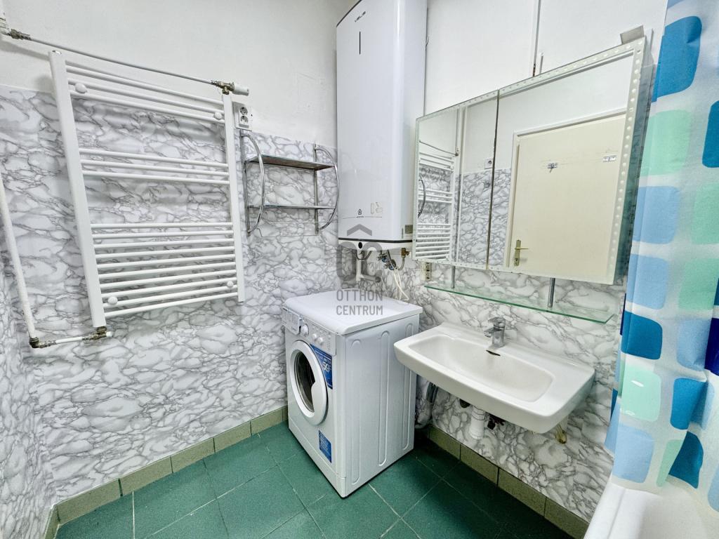 A lakáshoz egy kb. 15 m²-es pincehelyiség is tartozik, a társasház fenntartása pedig kiszámítható, a közös költség havi 14 500 Ft.