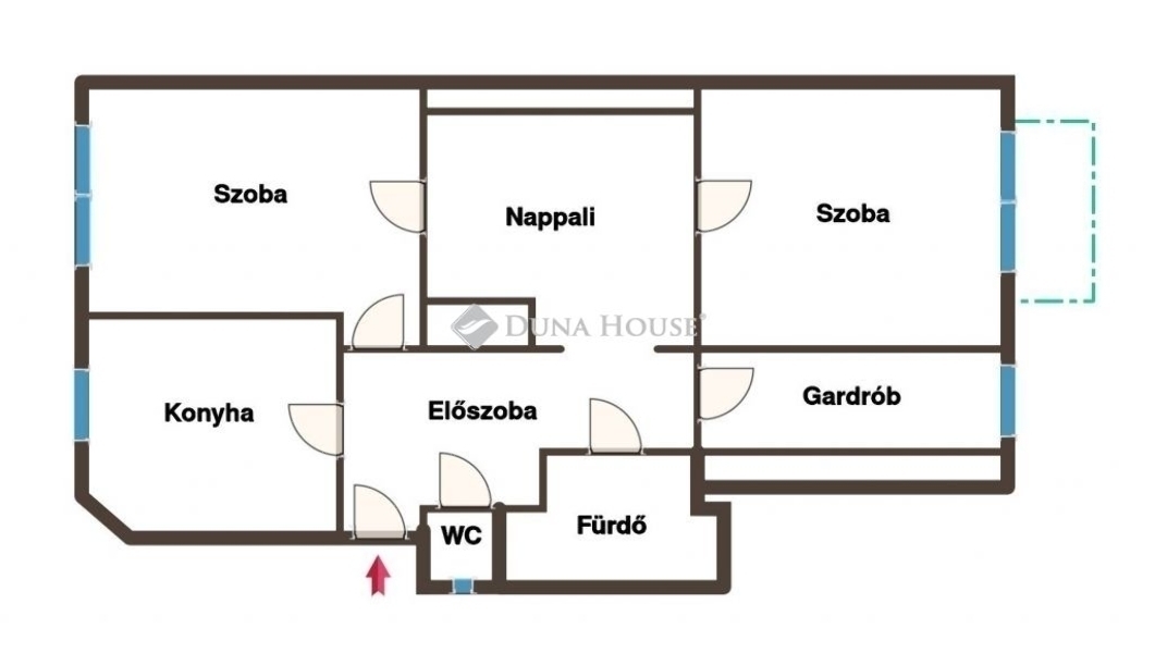 Jelenlegi alaprajzi elrendezését tekintve két külön-bejáratú szobával rendelkezik, de kis átalakítással a gardrób is szobaként funkcionálhat, illetve nagyobb módosítással, a konyha áthelyezésével még egy plusz szobát kaphatunk.
