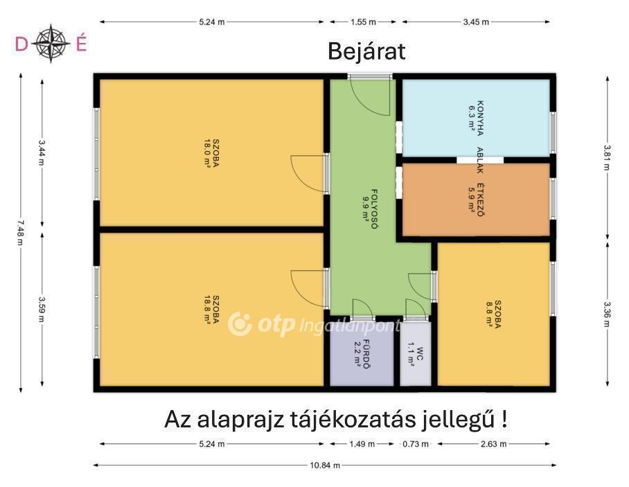 - Világos, napfényes terek, Észak-Déli fekvés.