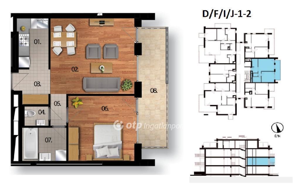 Lakások mérete: 43 nm-es, 1,5 szobás lakástól a 150 nm-es, 5 szobás és a tetőteraszos, exkluzív penthouseig.