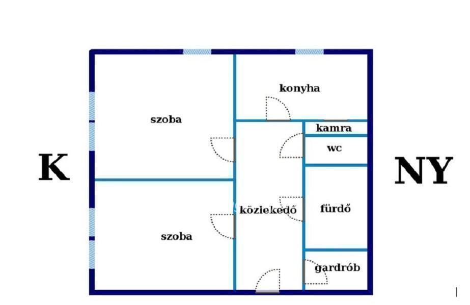 Az előszobából balra két tágas, napfényes szoba nyílik, melyeket reggel beragyog a keleti nap.