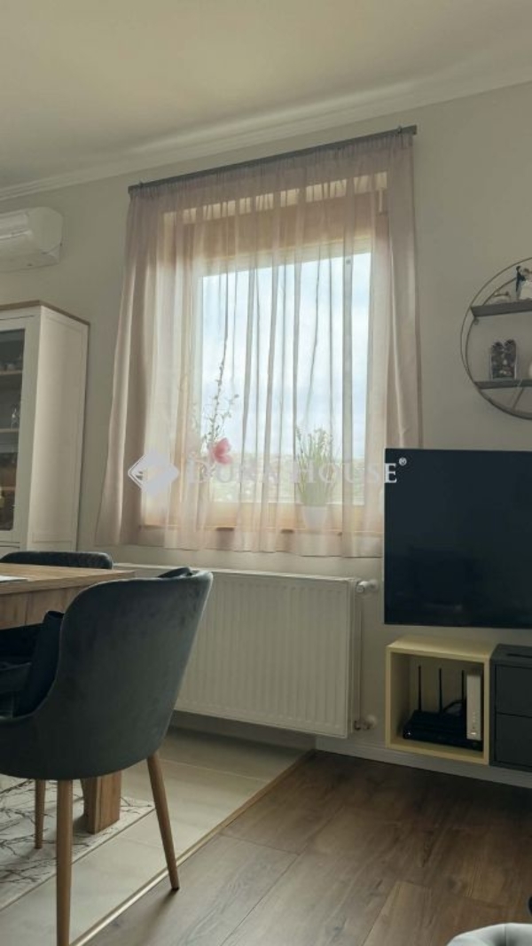 Fűtése kombi kazánnal működik, bélelt a kémény, kettő klíma van a lakásban, a lakás riasztóval és távfelügyelettel ellátott, áram 3x20A.