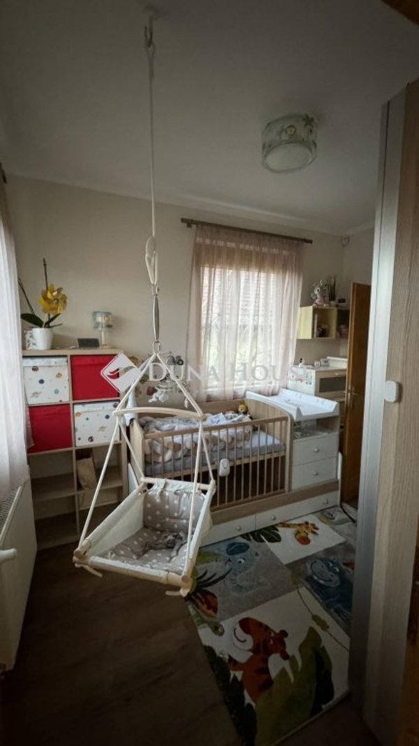 Az ötlakásos, nagy kertes társasház 2001-ben épült, amerikai konyhás nappali, 2 hálószoba, 8 m2 terasszal, tárolóval és teremgarázs beállóval.