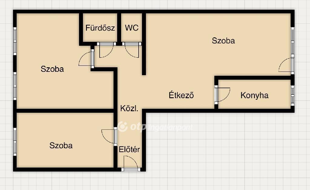 A lakás jelenlegi kialakítása szerint három külön bejáratú szobából, ablakos konyhából, előszobából, fürdőből és külön WC-ből áll. Igény szerint könnyen visszaalakítható kényelmes 2+2 félszobássá, így többféle élethelyzethez is jól alkalmazkodik.