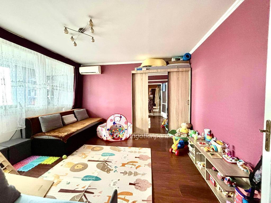 A lakás jelenlegi elosztása ideális: nappali + 2 külön nyíló hálószoba, így kiváló választás lehet kisgyermekes családoknak vagy akár befektetésre is.