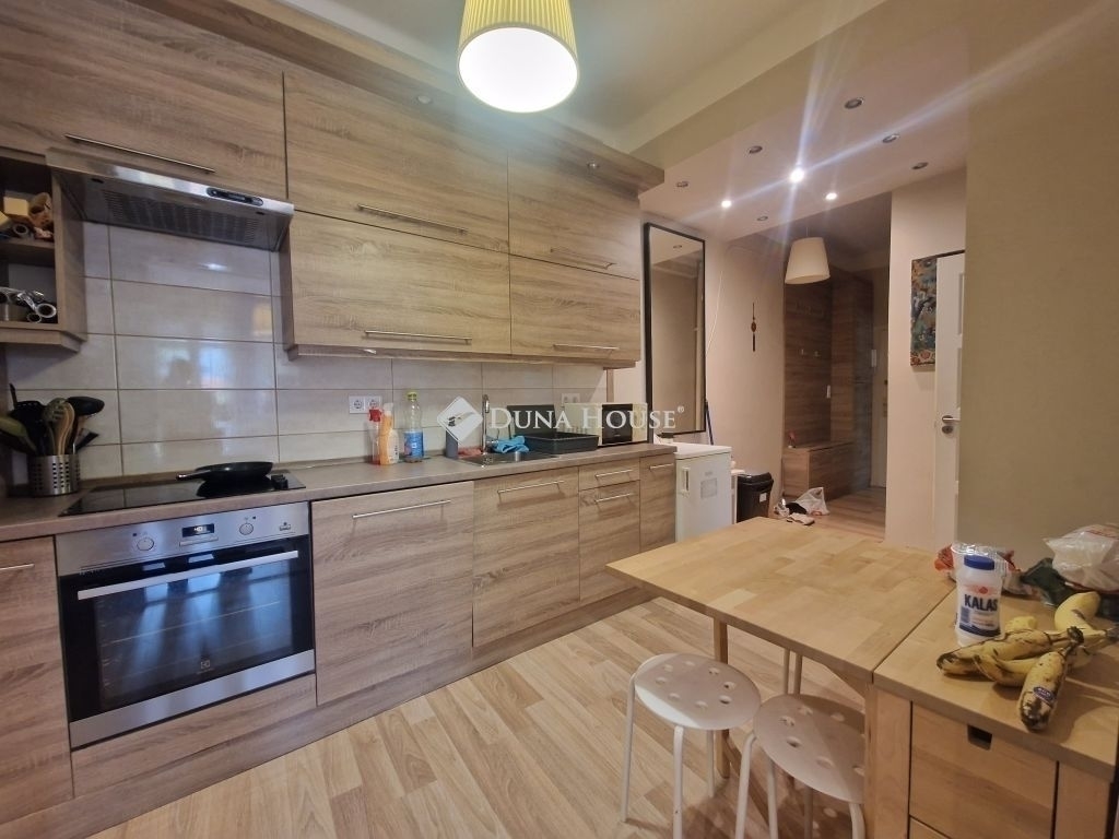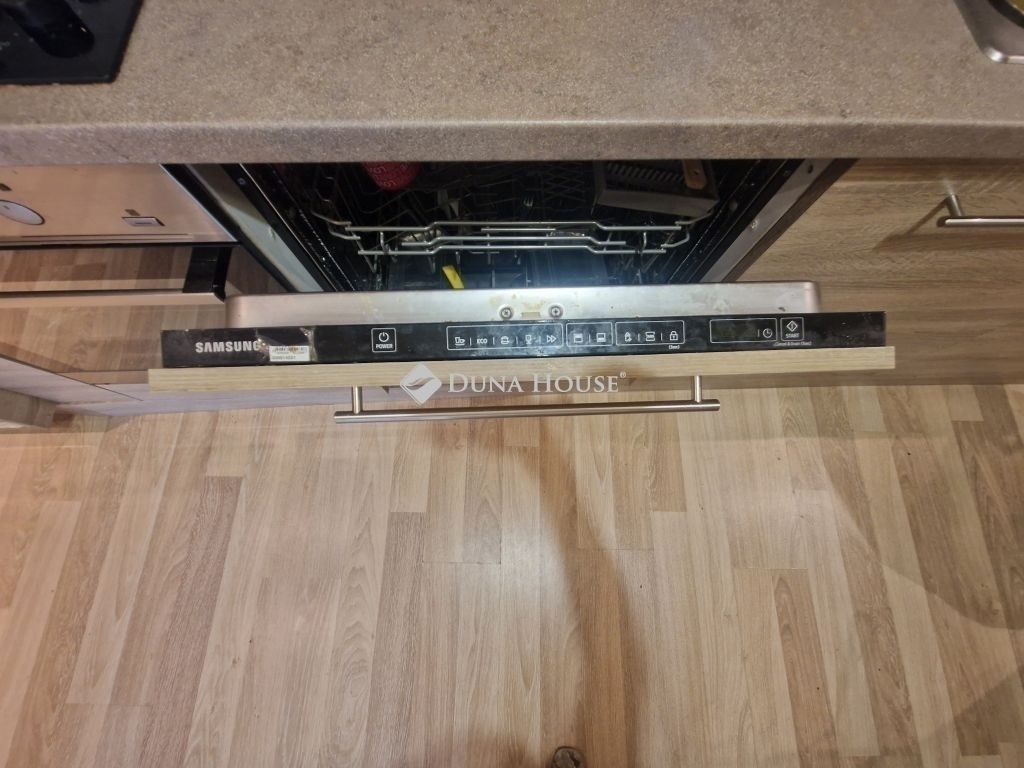 A felújítás éve: 2018. A komyha teljeskörűen gépesített- mosogatógép,tüzhely, sütő,páraelszívó,valamint mosógép .Ötletes tolóajtós megoldással a konyha összenyitható a nappalival,vagy éppen teljesen elszeparálható igény szerint.
