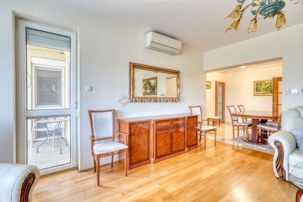 (English below)Eladó kivételes állapotú, azonnal költözhető lakás Budapest 11. és 12. kerület határán, Gazdagréten!Budán, a 11. és 12. kerület találkozásánál, eladó egy 100 m²-es, erkélyes, tágas és napfényes lakás, 5 m²-es erkéllyel, egy rendezett, liftes társasház harmadik emeletén. A ház saját, gondozott kerttel rendelkezik, a lépcsőházban pedig közös kerékpár- és babakocsi-tároló is található.A környék kiváló közlekedésű és infrastruktúrájú: néhány percen belül elérhető a Budapest ONE irodaház, az Etele Pláza, a Móricz Zsigmond körtér, valamint több busz- és villamosvonal is, amelyek gyors összeköttetést biztosítanak a belvárossal. A környéken iskolák, óvodák, bevásárlási lehetőségek, parkok és sportlétesítmények is megtalálhatók.A lakás főbb jellemzői:Alapterület: 100 m² + 5 m² erkélyHelyiségek: 3 hálószoba + nappali + étkező + konyha + 2 fürdőszoba + kamra + előszoba2020-ban teljeskörűen felújított konyha, modern beépített gépekkelKlímaberendezés, minden ablakon automata redőny és szúnyoghálóParkettás nappali és hálószobák, beépített szekrényekkelBiztonsági ajtó és riasztórendszerKét hálószoba a zöld kertre, a nappali és a harmadik hálószoba az utcára nézAz erkély a nappaliból és az egyik hálószobából is megközelíthetőA lakáshoz tartozik a mélygarázsban két különálló parkolóhely (12 és 13 m²), valamint egy felszerelt, 7 m²-es saját tároló, továbbá egy közös kerékpártároló is a lakók számára.Teljes ár: 209 millió forint (lakás + 2 parkolóhely + tároló)Állapot: kivételesen jó, azonnal költözhetőEz a lakás ideális választás mindazoknak, akik modern kényelmet, nyugalmat és budai minőséget keresnek egy remek elhelyezkedésű, rendezett társasházban.Érdeklődés esetén várom hívását a hét bármely napján!Exceptionally Maintained, Move-In Ready Apartment on the Border of Budapests 11th and 12th Districts, in Gazdagrét!Located in one of Budas most sought-after residential areas, this spacious and sunny 100 m² apartment with a 5 m² balcony is situated on the third floor of a well-maintained, elevator building. The property also offers a private landscaped garden and a shared bicycle and stroller storage area within the building.location offers outstanding transport connections and infrastructure: the Budapest ONE office complex, Etele Plaza, and Móricz Zsigmond Square are all within a few minutes reach. Several bus and tram lines provide fast access to the city center. The neighborhood is well-served with schools, kindergartens, shops, parks, and sports facilities, making it ideal for both families and professionals.Main features: Floor area: 100 m² + 5 m² balcony Layout: 3 bedrooms + living room + dining area + kitchen + 2 bathrooms + pantry + entrance hall Fully renovated kitchen (2020) with modern built-in appliances Air conditioning, automatic shutters, and mosquito screens on all windows Hardwood floors in the living room and bedrooms, with built-in wardrobes Security door and alarm system Two bedrooms overlook the green courtyard, while the living room and third bedroom face the street Balcony access from both the living room and one of the bedroomsThe property includes two separate parking spaces (12 m² and 13 m²) in the underground garage, a well-equipped 7 m² private storage unit, and access to a shared bicycle storage area for residents.Total price: 209 million HUF (apartment + 2 garage spaces + storage)Condition: Excellent / Move-in readyThis home is the perfect choice for anyone seeking modern comfort, peace, and quality Buda living in a prime, well-kept residential environment.For more information or to arrange a viewing, feel free to contact me any day of the week!