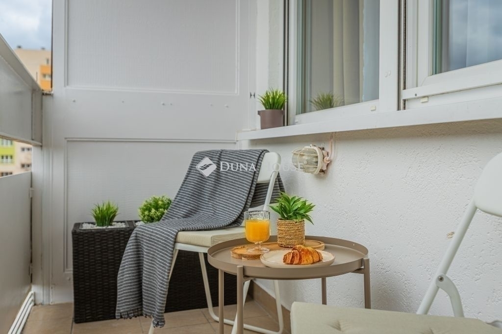 Az 46 m²-es, déli fekvésű, 2 szoba + 6m2 erkélyes ingatlan rendkívül világos és napsütötte. Az erkélyről kellemes, zöld területre nyílik a kilátás, ami mentesen az utca zajától.