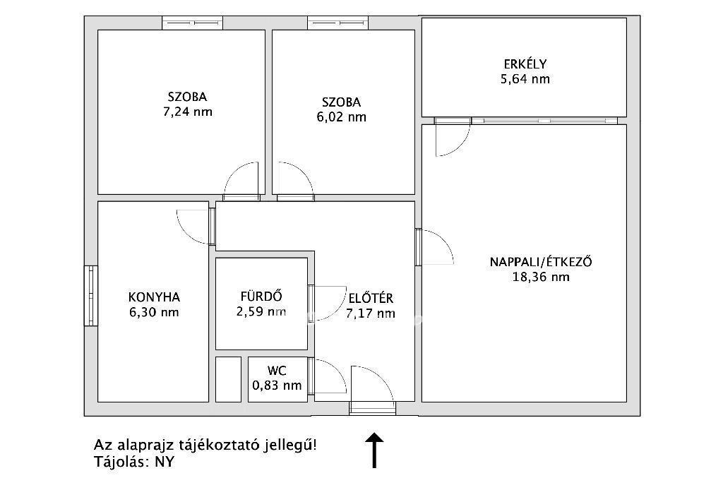 A lakás elosztása rendkívül praktikus – minden szoba külön bejáratú, így ideális választás pároknak, kisebb családoknak vagy befektetőknek.