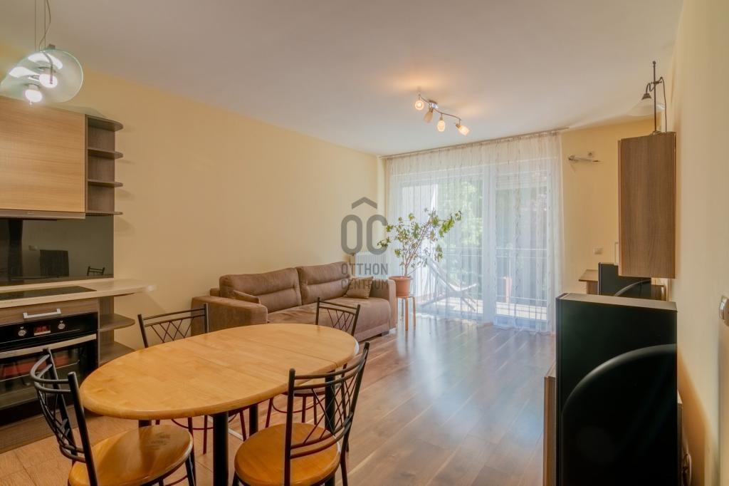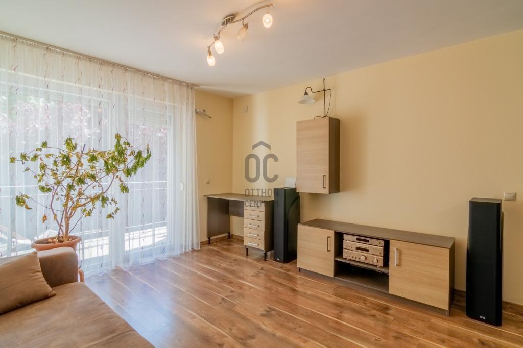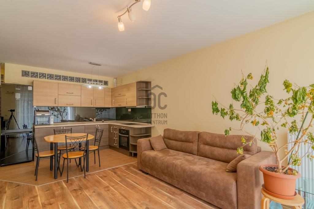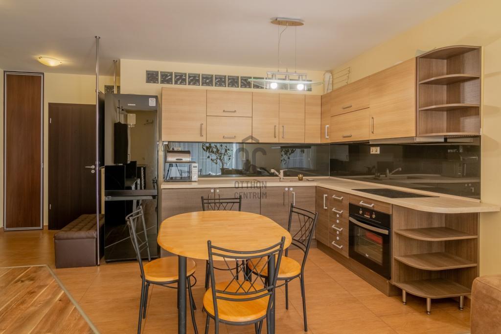 Az ingatlanhoz tartozik egy tágas és világos amerikai konyhás nappali, egy hálószoba,fürdőszoba és wc, egy különnyíló wc + egy 6 m2-es erkély. A konyha jól fel van szerelve ( mosogatógép, páraelszívó, sütő, főzőlap). A lakás kiválóan felszerelt tárolókkal, a külön gardróbon kívűl plusz kis tárolóban helyezték el a gázkazánt.