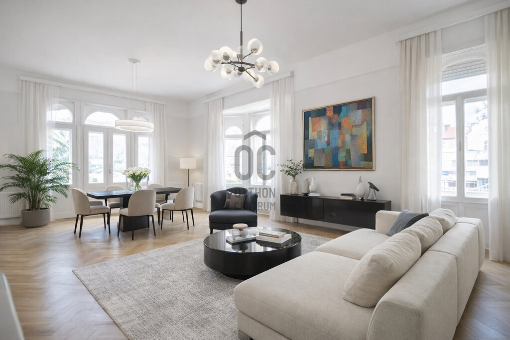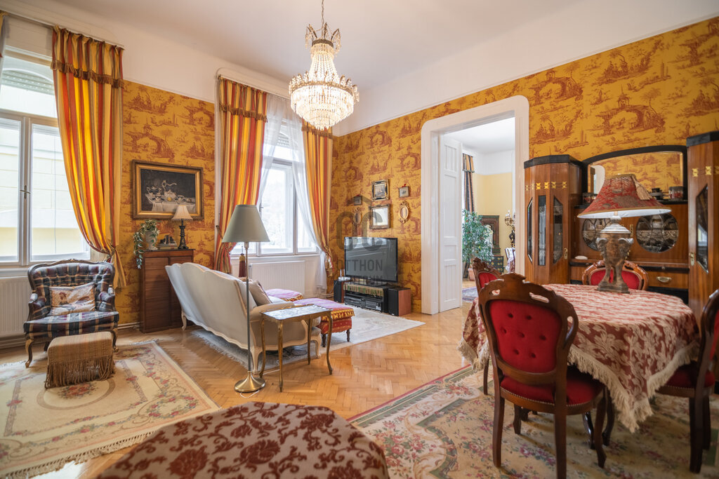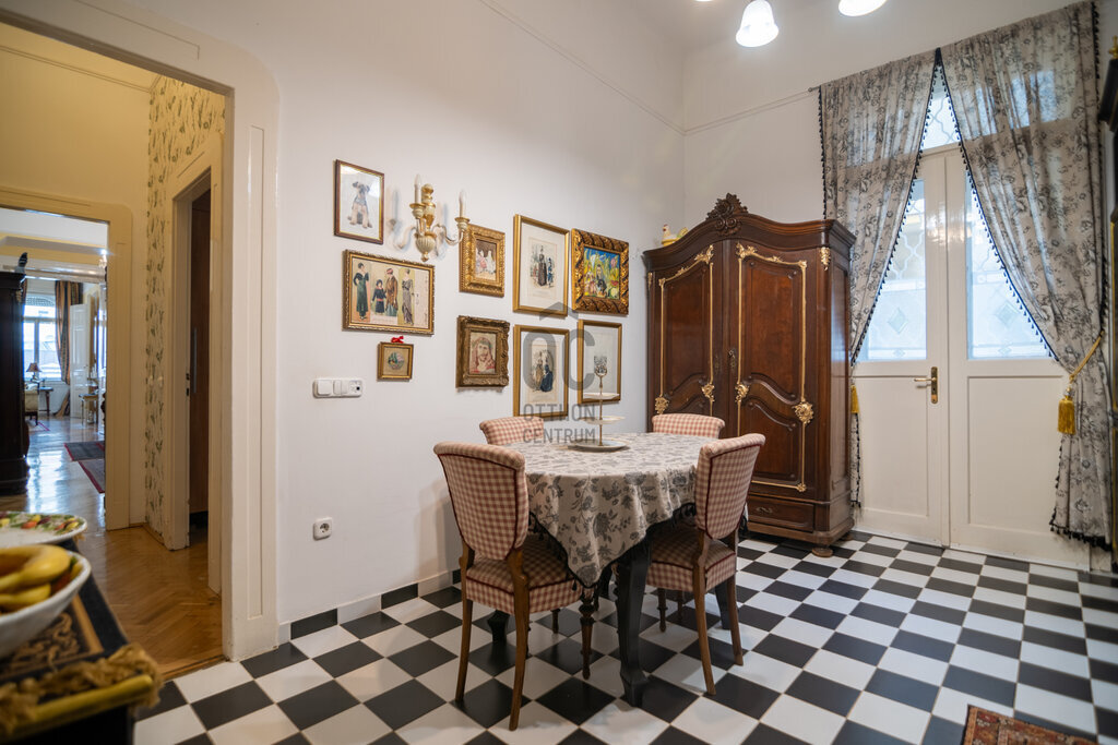 A lakás impozáns, nagy terekkel rendelkezik, jelenleg 6 szoba + hall található benne, de könnyen kialakítható még 1 -2 szoba pluszban.