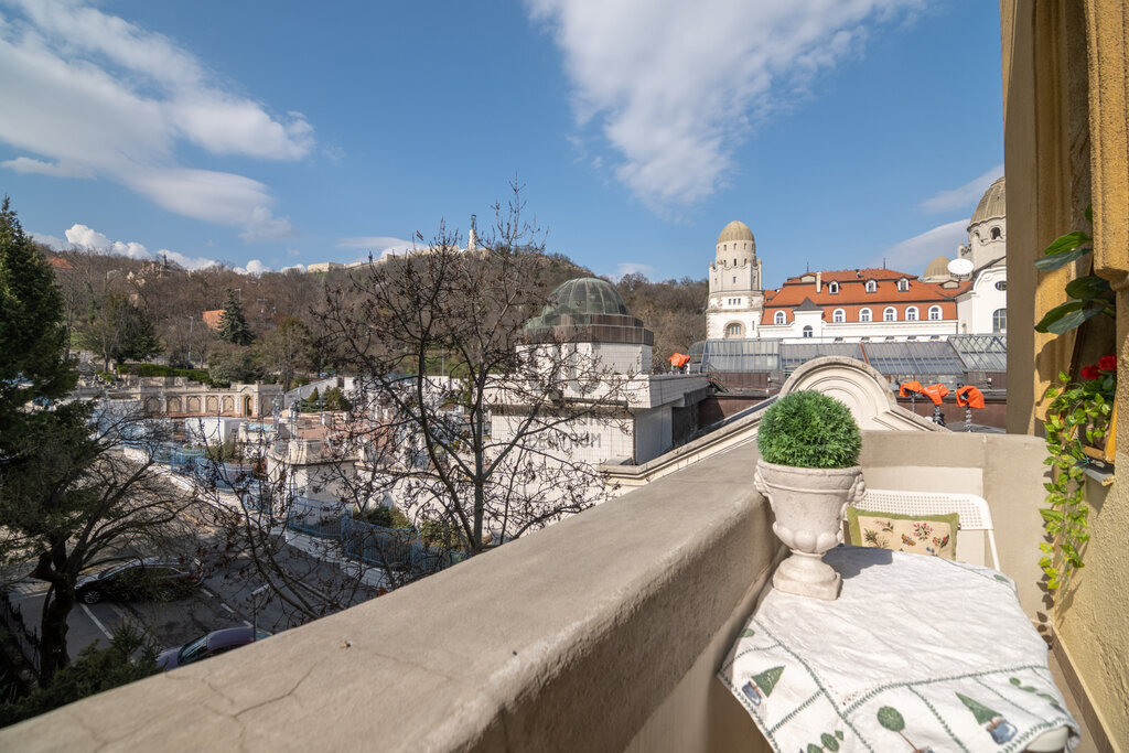 Az ingatlan 3 erkéllyel rendelkezik, csodás kilátással a Gellérthegyre és a Citadellára, valamint egy kis részben a Dunára is.