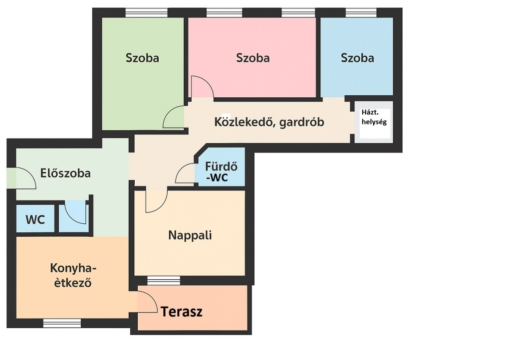 A lakás és a társasház is kifogástalan állapotban van, a fűtés házközponti, egyedi mérővel. A homlokzat, a lépcsőház és a közös terek rendezettek, karbantartottak.