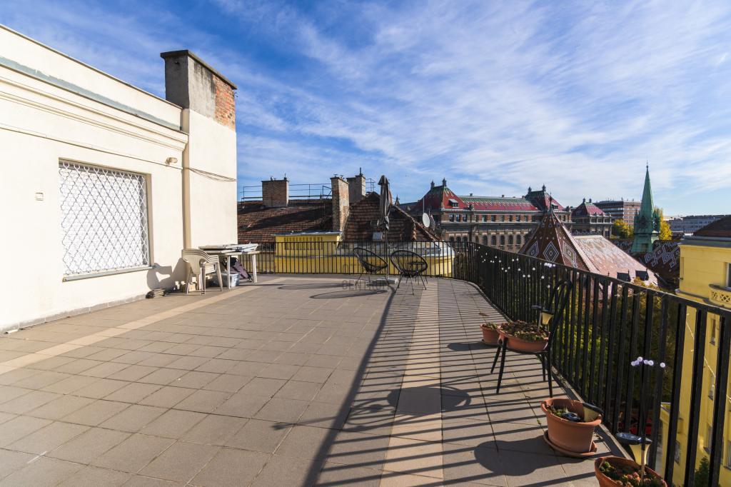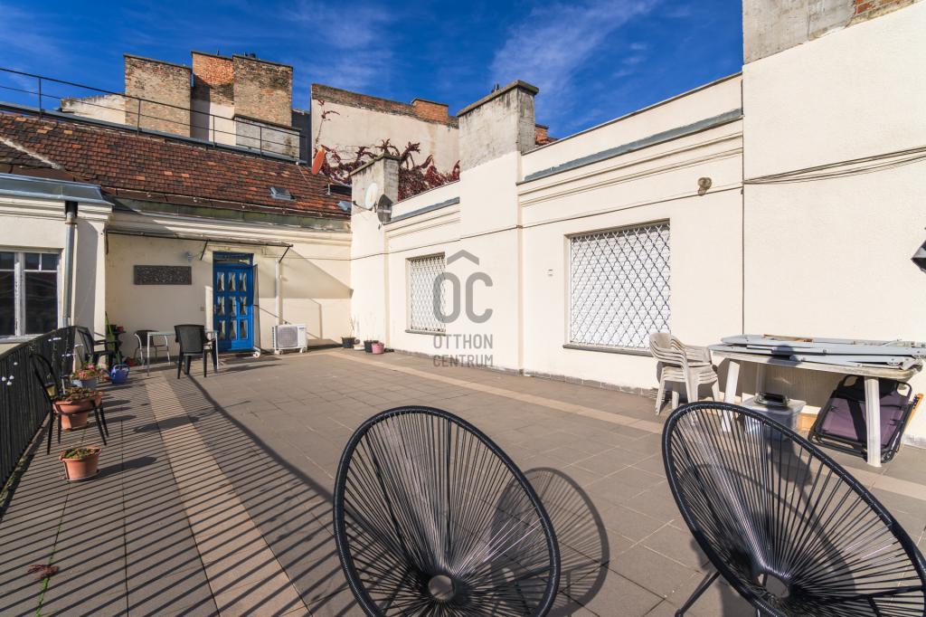 Az ingatlanhoz tartozik egy, a többi lakóval közös használatú 65 négyzetméteres terasz, amely tökéletes helyszínt biztosít a szabadban történő pihenéshez, baráti összejövetelekhez vagy akár grillezéshez.