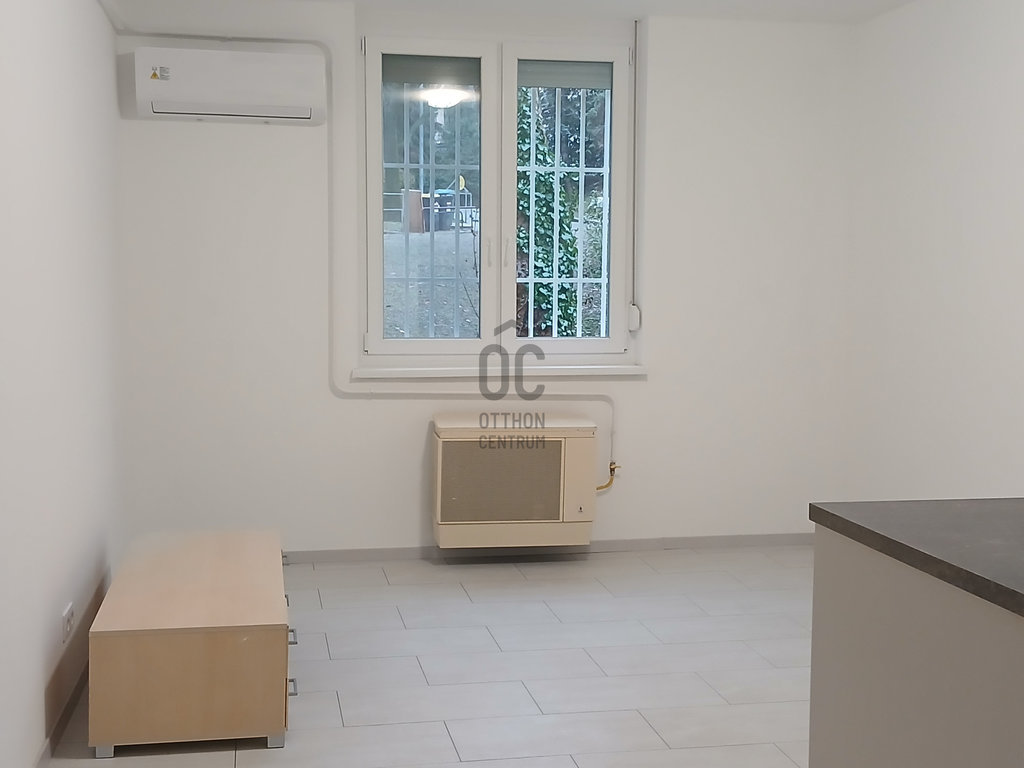 For sale in Budapest’s 11th district, in the Sasad area on Rahó Street, this freshly renovated ground floor studio apartment overlooks a quiet, green garden.