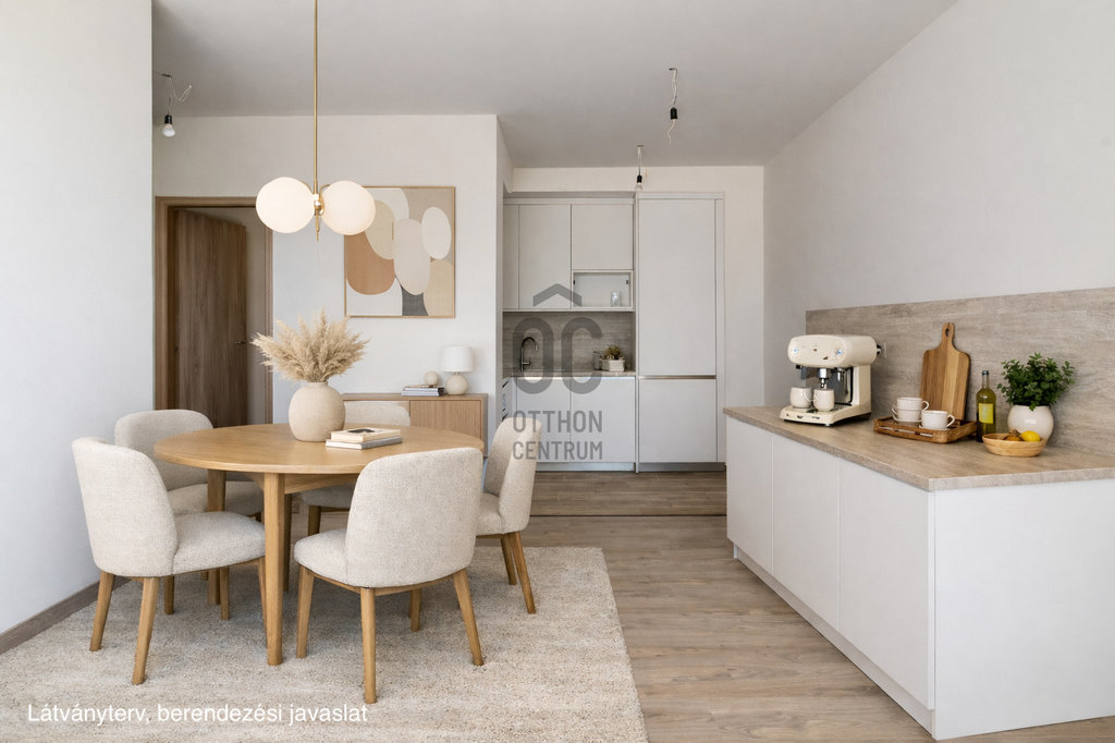 A hirdetésben szereplő képek között látványtervek is találhatók, amelyek az ingatlan alaprajza alapján készültek. Ezek segítenek elképzelni, hogyan alakítható ki a lakás modern, harmonikus otthonná – megmutatva a terekben rejlő lehetőségeket és hangulatot.