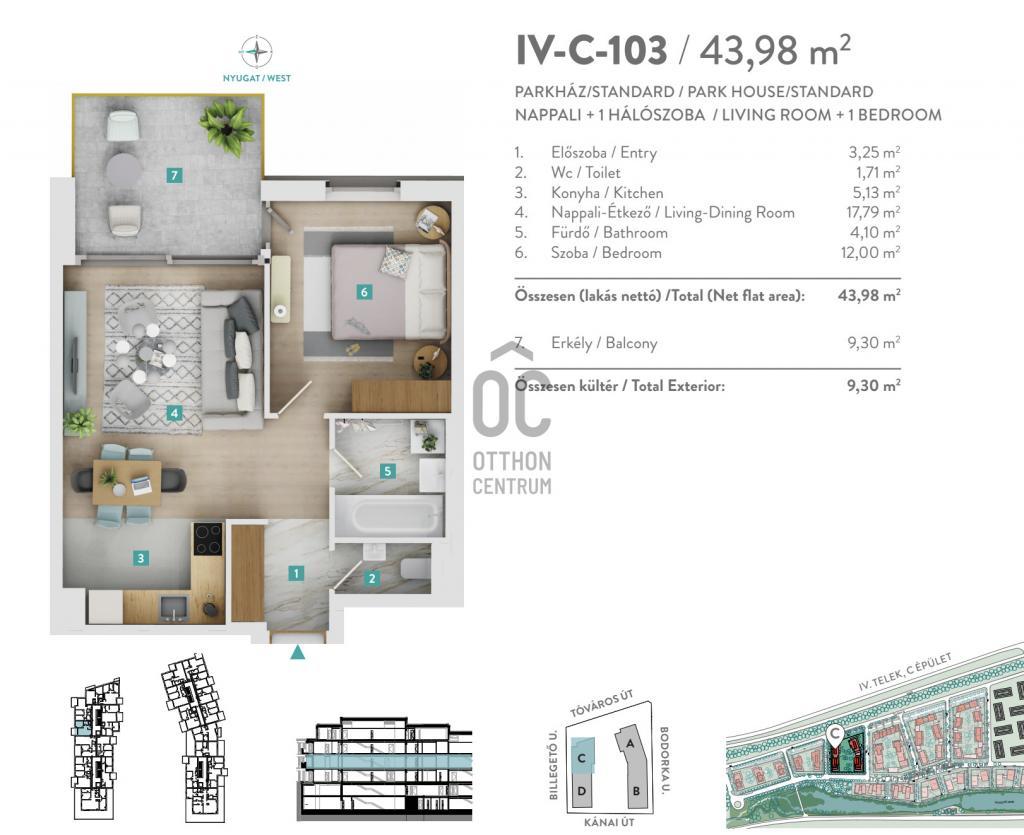 A 44,12 m²-es, nappali + hálószobás otthon nyugati tájolású, így a teraszról (9,23 m²) esténként a naplementében gyönyörködhetsz. Vadonatúj, első tulajdonostól, prémium kivitelezéssel és teljes garanciával.