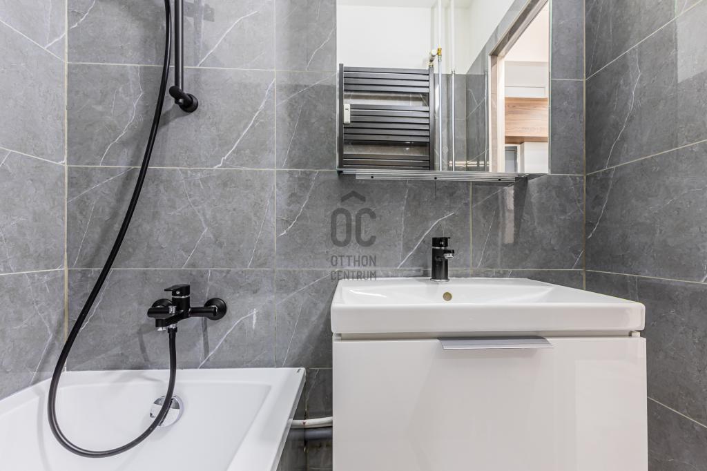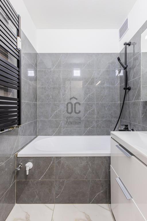 A fürdőszoba (külön Wc-vel) modern, kényelmes kialakítású, a távfűtés pedig egyedi mérés alapján működik, így a fűtési költségek is optimálisan tervezhetők. A klímaberendezések gondoskodnak arról, hogy a nyári hőségben is kellemes hőmérséklet fogadjon.