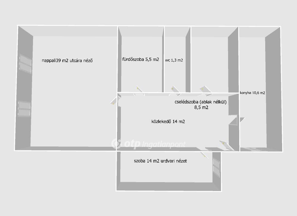 A nappali 39 m2-ének köszönhetően könnyen az is 2 szobává módositható.