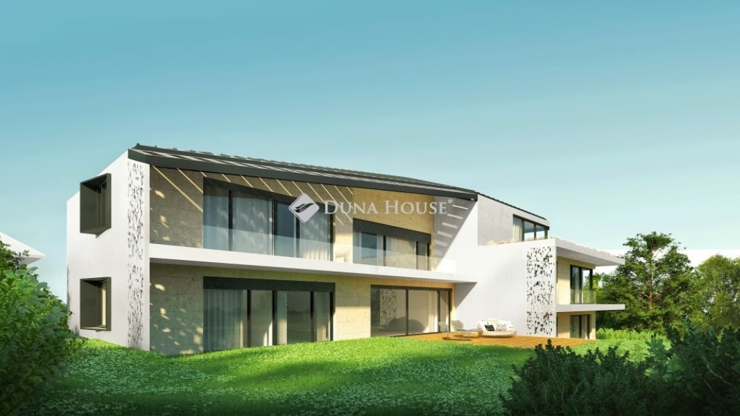 Megújuló energia, fűtő-hűtő rendszer, felső kategóriás anyaghasználat, nagy teraszok, élhető zöld terület.