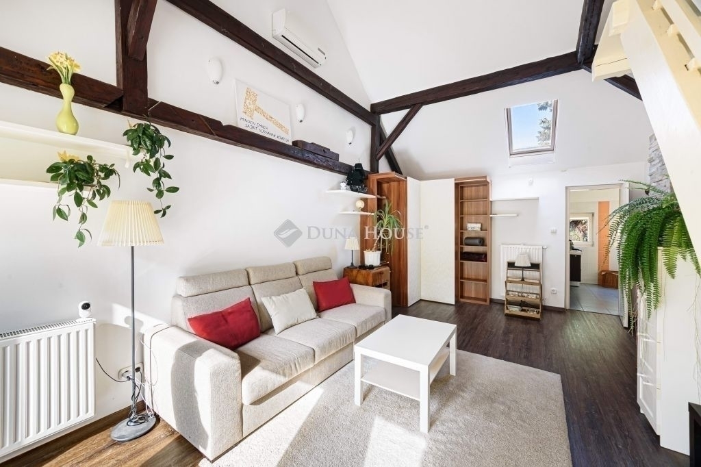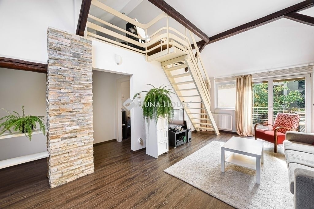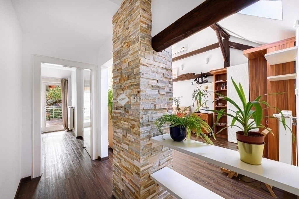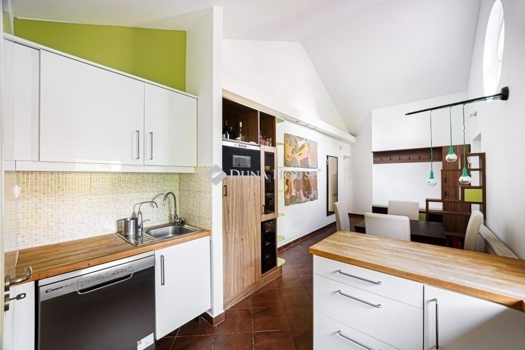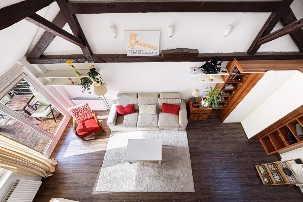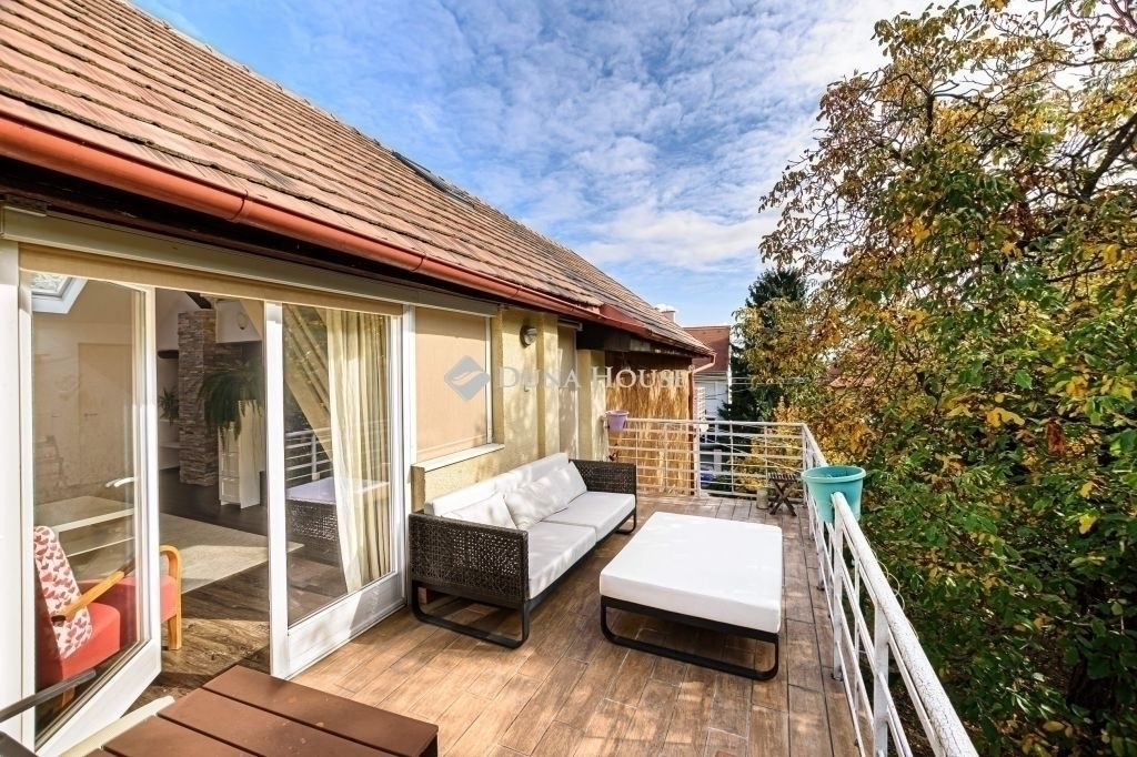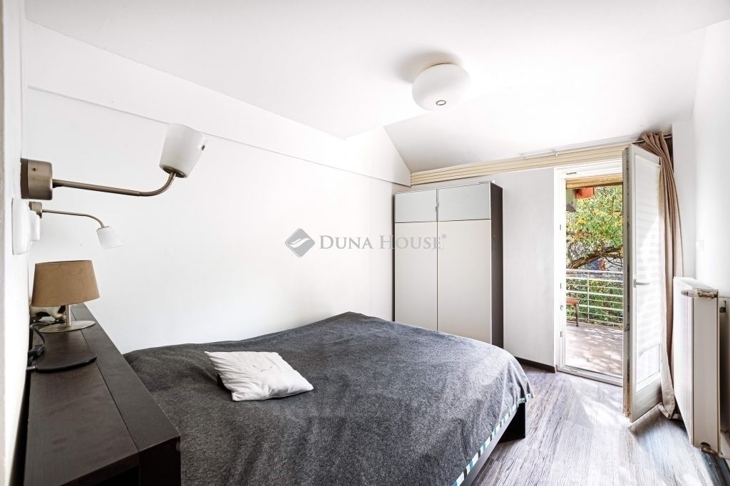 Napsütötte, tágas, teraszos otthon - KissvábhegyenBudapest egyik legkedveltebb, zöldövezeti részén, a XII. kerület Kissvábhegyén, az Ügyész utcában kínálunk megvételre egy különleges hangulatú, 80 m²-es, belső kétszintes lakást, 12 m²-es, napfényben fürdőző, kertre néző saját terasszal.A lakás egy elegáns, háromlakásos villaépület legfelső szintjén helyezkedik el, így teljes intimitást és nyugalmat biztosít tulajdonosának.A lakás különlegességei:- Lélegzetelállító terek és fényár a 4 méteres belmagasság, valamint a rusztikus, látszó gerendás nappali egyedi karaktert kölcsönöz az otthonnak.- Kivételes tárolókapacitás ízlésesen beépített szekrények és tágas gardrób biztosítanak rendszerezett életteret.- Csendes, zöld környezet, mégis kiváló közlekedés a belváros mindössze percek alatt elérhető. (Busz: 21, 39, 102, 210, 212 Villamos: 17, 59, 61 M2 metró: 10 perc séta)A lakás elrendezése:- elegáns előszoba- konyha-étkező + kamra- tágas nappali rusztikus látszógerendákkal, közvetlen teraszkapcsolattal- kényelmes méretű hálószoba, szintén kijárattal a teraszra- stílusos fürdőszoba zuhanykabinnal és WC-el- a galériaszinten egy nyitott, világos dolgozó- vagy vendégszoba, beépített gardrób és extra tárolófelületekA lakás a villa felső szintjén, kb. másfél emelet magasságban található. A hozzá vezető zárható, kizárólagos használatú lépcsőház további biztonságot és extra tárolási lehetőséget kínál.A lakás teljes körű felújításon esett át, és azóta is gondosan karbantartott.Cirkófűtés és klímaberendezés gondoskodik az évszakokhoz illő kényelemről.Külső adottságok:A villa egy 1070 m²-es, ősfás, parkosított telken helyezkedik el. A lakáshoz saját kerthasználat tartozik, ahol homokozó-játszórész, grillterasz, pihenőkert vagy veteményes is kialakítható.A kényelmet saját udvari gépkocsibeálló és külön külső tároló is szolgálja, melyek árát a vételár tartalmazza!!!Ez az ingatlan tökéletes választás azoknak, akik egy napfényes, hangulatos, otthonos lakást keresnek a XII. kerület egyik legjobb részén, ahol a zöld környezet és a városi kényelem találkozik.Ha Ön is egy egyedi atmoszférájú, magas minőségű lakásra vágyik Budapest egyik legkívánatosabb részén, keressen bizalommal a részletekért és a megtekintés egyeztetéséhez!