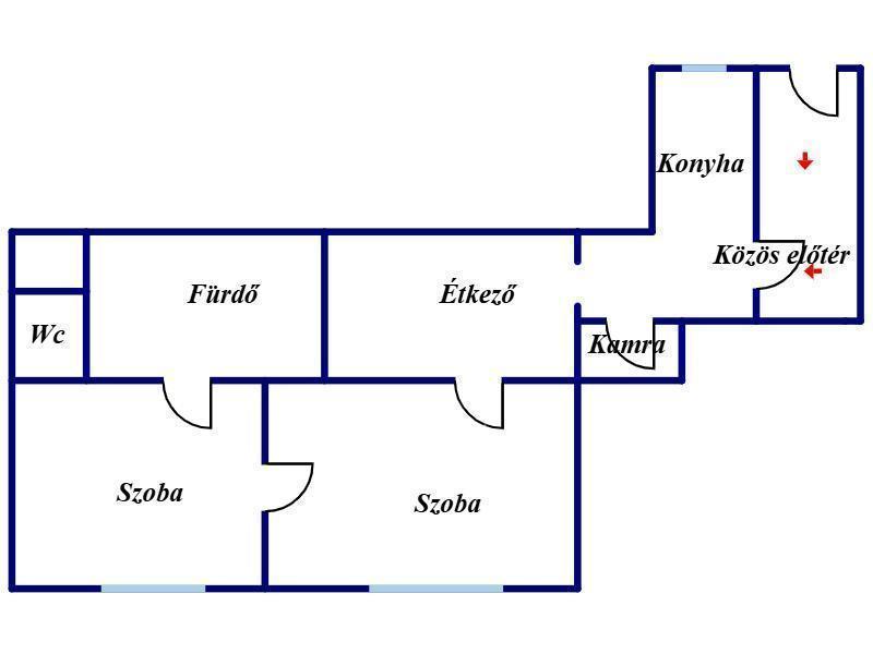 Az ingatlanban 2 szoba, étkező, külön fürdő és wc, kamra található.