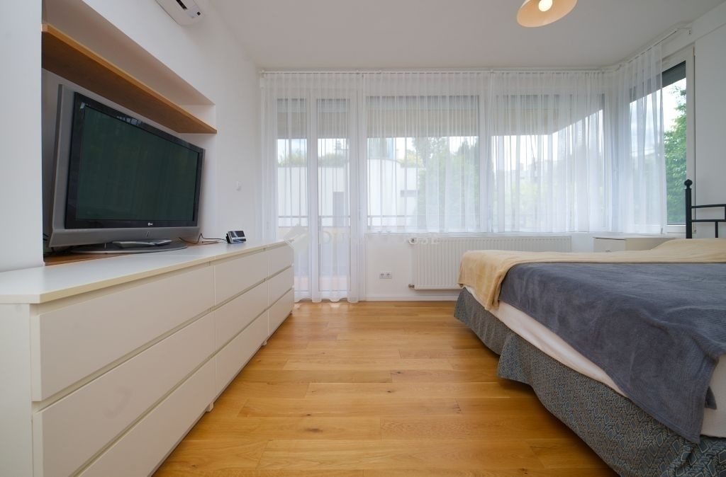 A Kis-Svábhegy közvetlen közelében eladó a Zsolna utcában egy igényes két hálószobás légkondicionált, nagy erkélyes tehermentes ingatlan. A lakáshoz tartozik egy 21nm-es gépkocsi beálló illetve egy 6nm-es tároló is. A társasházban kevés lakás található, a lakóközösség kiváló.