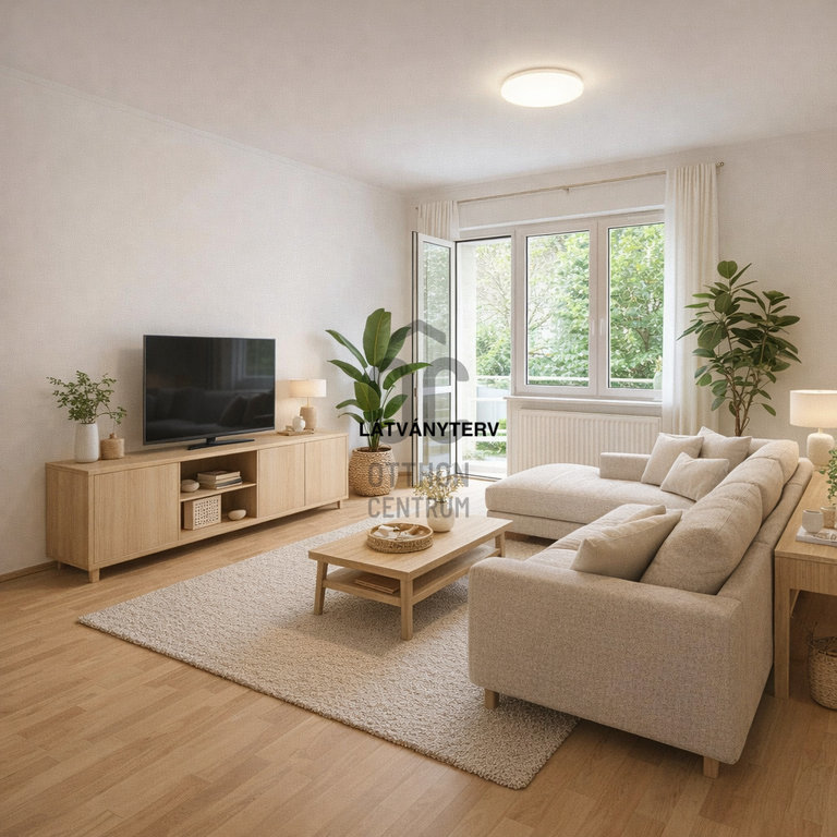 -tágas nappali és 2 hálószoba (13 és 14 m²)