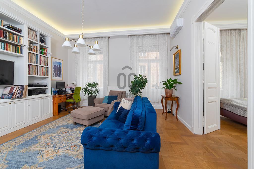 Lépjen be ebbe a 2020-ban teljeskörűen felújított, polgári otthonba, amely tökéletes harmóniát teremt az elegancia és a modern kényelem között. Ez az igényesen berendezett erkélyes, kétszobás lakás egy patinás, régi építésű házban található, amelynek köszönhetően a tágas terek és a családias hangulat azonnal magával ragadja. A kitűnő lokáció páratlan kényelmet biztosít, a Budai Várnegyed csupán néhány perc sétára van, felejthetetlen élményt nyújtva a város szívében. A két kényelmes szoba mellett a hatalmas konyha az otthon igazi központja, mely méltó díszlete lehet a mindennapi életnek és a vendégfogadásnak egyaránt. Ez az ingatlan egy valódi, értékálló ékszerdoboz a főváros egyik legkeresettebb részén.