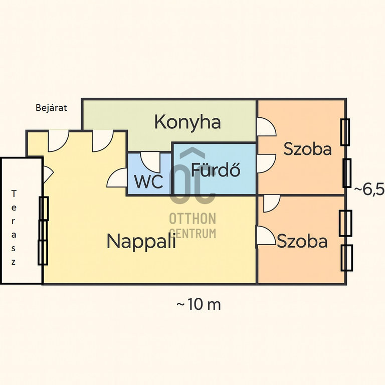 68 m² alapterület, 3 külön nyíló szoba + nappali-étkező
