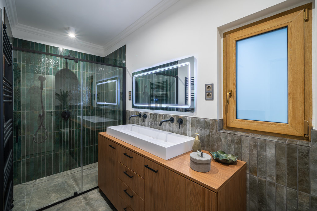 A padlófűtéssel temperált, napfényes télikerten keresztül érkezünk az otthonba, amely elegáns átmeneti térként fogad, és természetes kapcsolatot teremt a nappali–konyha–étkező térrel. Ez a nagyvonalú, világos egység a családi élet és a vendéglátás ideális színtere.
