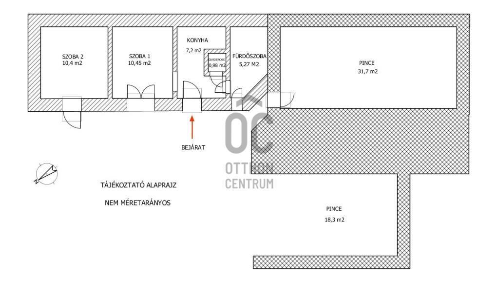 - 2 db pince - összesen 50 m2 (Az egyik pince elölről nyitott és felújítást-helyreállítást igényel. Feltehetőleg ennek mérete a jelenleg láthatónál jóval nagyobb)