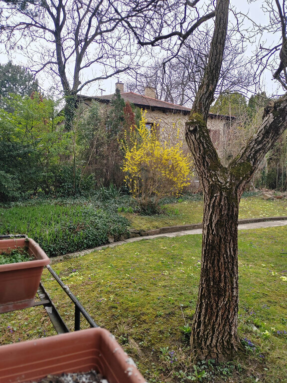 A nappali egész nap világos, közvetlen kapcsolattal az erkélyhez, ami a hátsó, nagy, zöld kertre néz. A hálószoba szintén erre a csendes, parkosított részre néz – itt a madárcsicsergés az alapzaj.
