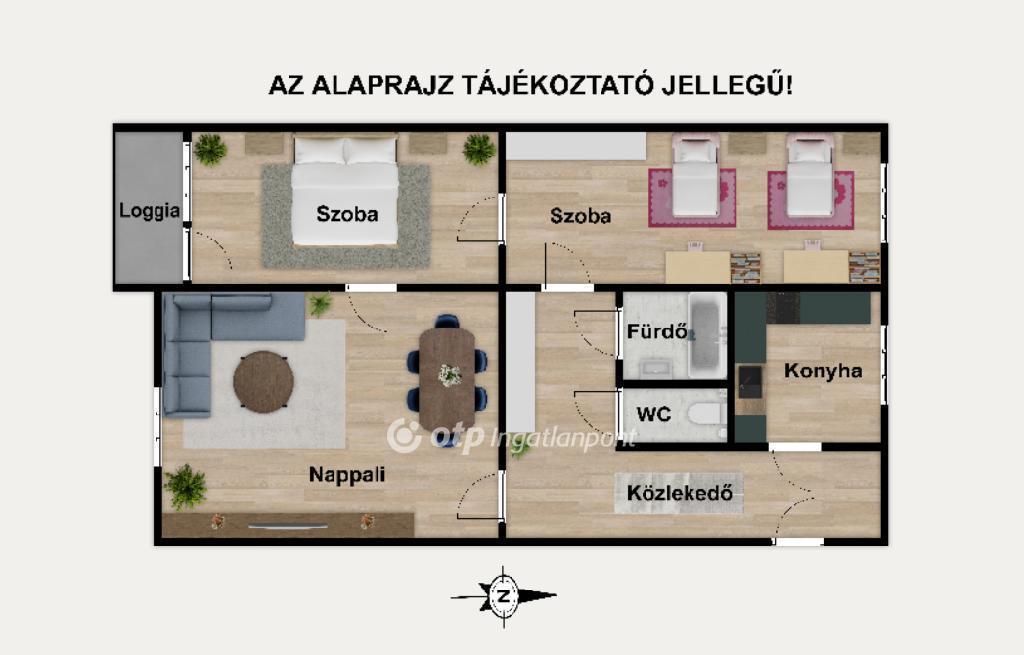 A tágas, Déli tájolású nappali a lakás központi része. A két hálószoba külön bejáratú, így jól használható családoknak vagy akár lakótársaknak is. A lakásban külön WC és fürdőszoba található, így a reggeli sorban állás is könnyedén elkerülhető.