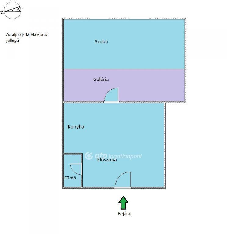 A lakás elrendezése praktikus, 15 m?-es szoba, amelyben egy 6,5 m?-es fekvőgaléria is kialakításra került a 3,5 méteres belmagasság révén.