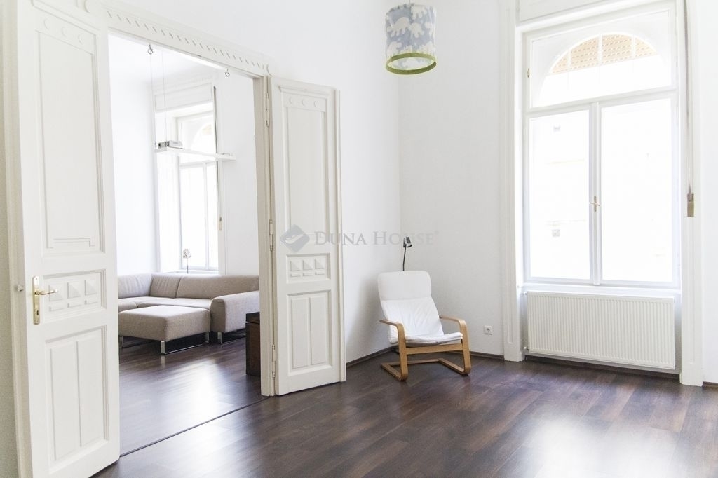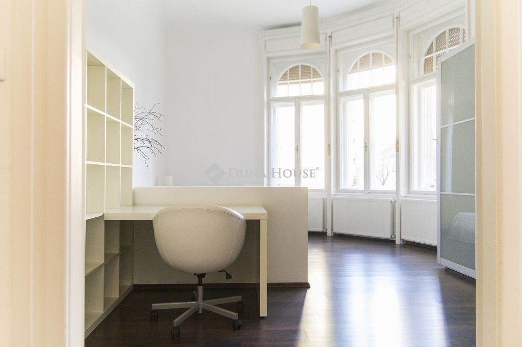 Tágas, 4 szobás polgári lakás a Balzac utcában, Westend közelében!105 nm-es, világos, 1. emeleti lakás két fürdővel és hatalmas konyha-étkezővel családnak vagy otthoni munkához ideális.A XIII. kerület közkedvelt részén, a Westend szomszédságában kínálunk eladásra egy tágas, 4 szobás, 105 nm-es, első emeleti, utcai nézetű lakást.A lakás praktikus és ritka elosztású:4 külön nyíló szoba (nappali + 3 háló/dolgozó)tágas, étkezővel egybenyitott konyhakádas fürdőszobakülön zuhanyzós fürdőkülön WCA lakás világos, fa nyílászárókkal, cirkó fűtéssel, rendezett, karbantartott állapotban várja új tulajdonosát.A ház szintén szépen gondozott, klasszikus polgári, körfolyosós épület.Elhelyezkedése kiemelkedő: a Westend, a Nyugati és a Duna-part is néhány perc sétával elérhető.Főbb adatok:Alapterület: 105 nmSzobák: 4Külön konyha-étkező2 fürdőszoba + külön WCFűtés: cirkóemelet, utcai nézetBútorok megbeszélés szerint az ingatlanban maradhatnak.
