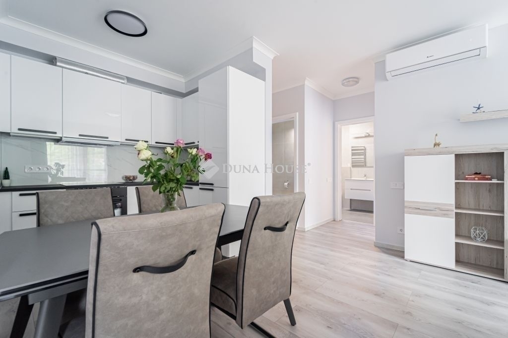 Marina Part Dunától pár lépésre, azonnal költözhető, magasföldszinti, frissen felújított otthon eladó!Eladó egy 64 nm-es, nappali + 2 külön nyíló szobás, erkélyes gyönyörű lakás Budapest egyik legkedveltebb városrészében, a Marina Parton! A lakás friss, minőségi felújításon esett át, így egy stílusos, igényes otthon várja új tulajdonosát.A társasház gondozott, gyönyörű belső kerttel rendelkezik. A lakás elrendezése praktikus: a két hálószoba külön nyílik, ideális pároknak, kiscsaládosoknak vagy befektetésnek.A minden igényt kielégítő, vadonatúj, gépesített konyha modern készülékekkel felszerelt, így a főzés is élmény lesz.A környék igazi városi oázis, a Duna-part csak pár lépésre, a Marina Parton pedig számos étterem, kávézó és szolgáltatás áll rendelkezésre. A társasházban 24 órás portaszolgálat működik, amely biztonságot és kényelmet nyújt. Opcionálisan teremgarázs is vásárolható az ingatlanhoz.Ritka lehetőség egy exkluzív környezetben ne maradjon le, hívjon bizalommal a megtekintésért!Stylish, Fully Renovated Apartment in Marina Part - Just Steps from the DanubeDiscover this beautifully renovated 64 sqm higher ground-floor apartment in the prestigious Marina Part neighborhood, one of Budapests most sought-after residential areas.Thoughtfully redesigned with high-quality materials and a keen eye for style, this move-in-ready home offers a blend of comfort, functionality, and modern elegance.Key Features: Spacious living area with abundant natural light Two separate bedrooms for privacy and flexibility Private balcony - perfect for morning coffee or evening relaxationBrand-new, fully equipped kitchen with modern appliances, ideal for cooking enthusiasts Its a great investment with the area provides high ROI.All around there are developments which makes it a great investment as the value keeps growing year after year.Contact us today to schedule a private viewing!